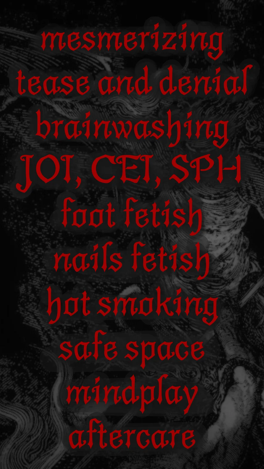I practice gentle dominance and prefer to be the guide to the world of your dark fantasies. In my shows I use these practices: mesmerizing, brainwashing, tease and denial, JOI, CEI, orgasm control, aftercare talk. I am also turned on by foot fetish and smoke fetish.